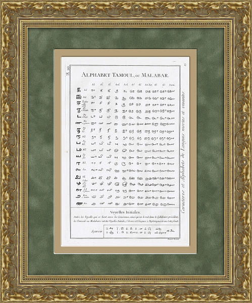 Тамильский алфавит (Индия, Цейлон, Малайзия), антикварная гравюра от Дени Дидро, 1784 г.
