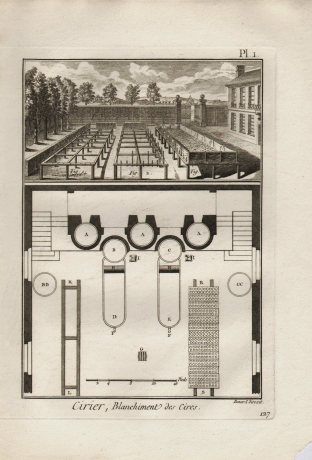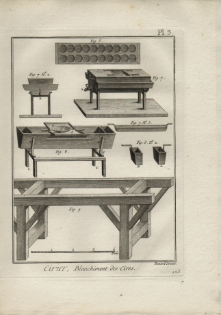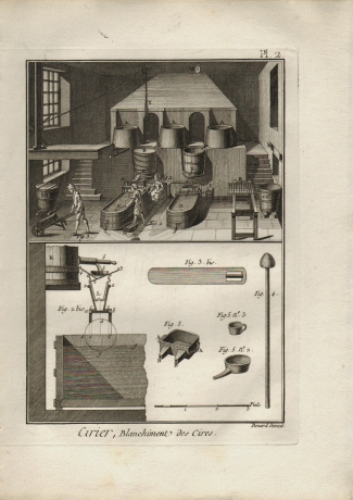 Изготовление свечей и воска, Дидро. Редкая антикварная гравюра XVIII века