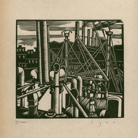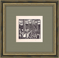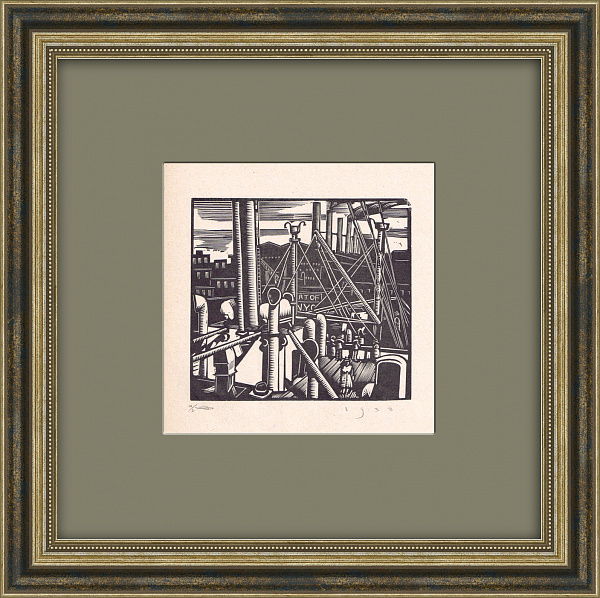 Индустриальный городской пейзаж, авторская гравюра на дереве Эрика Гилла