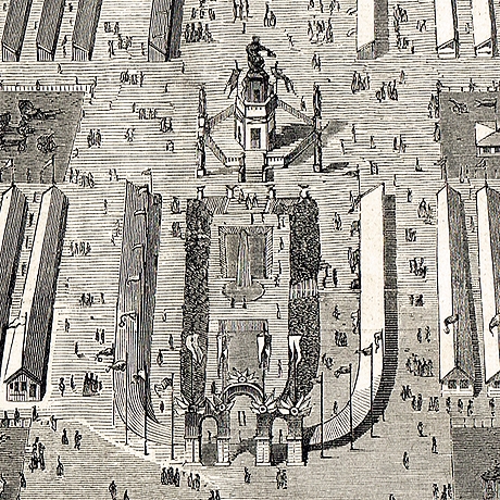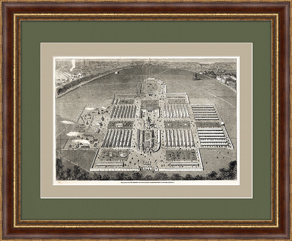Международная сельскохозяйственная выставка в Гамбурге 1863 : панорама с птичьего полета. Антикварная гравюра