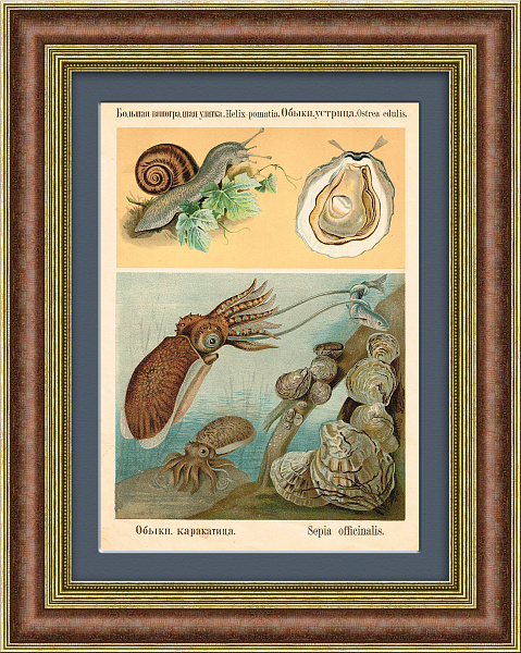 Разновидности моллюсков. Старинная хромолитография