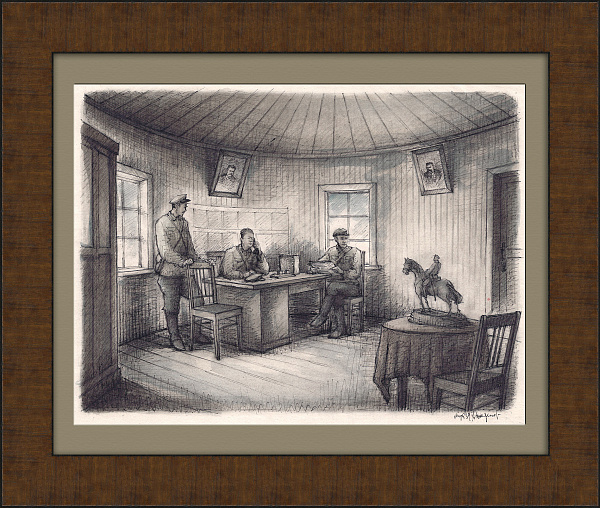 В штабе Первой Конной армии, уникальная авторская графика 1939 года