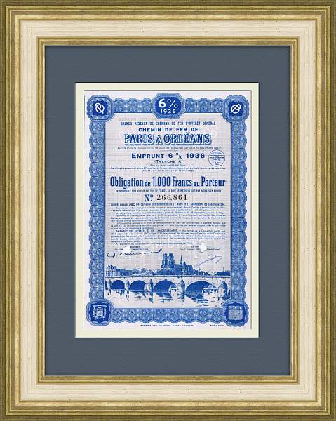 Облигация железнодорожной компании Paris a Orleans в 1000 франков, 1923 год