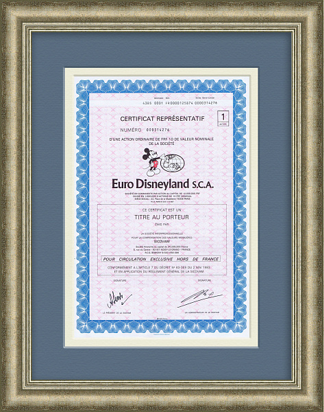 Акция Диснейленд Euro Disney в 5 франков, 1983 год. Редкость!