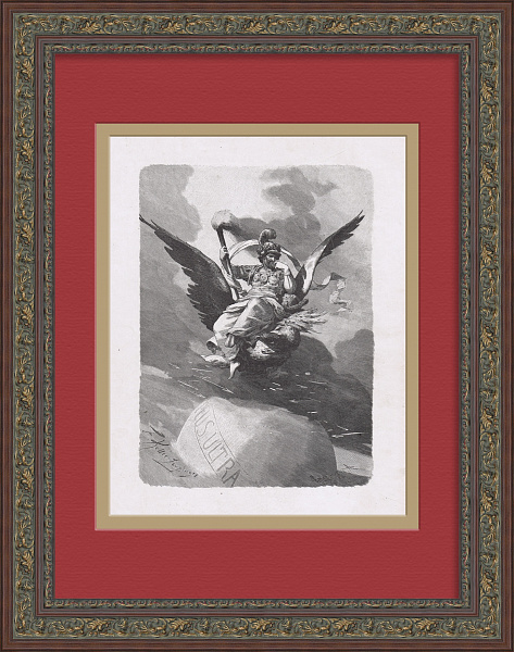 Зевс-громовержец, аллегория Plus ultra.Старинная гравюра