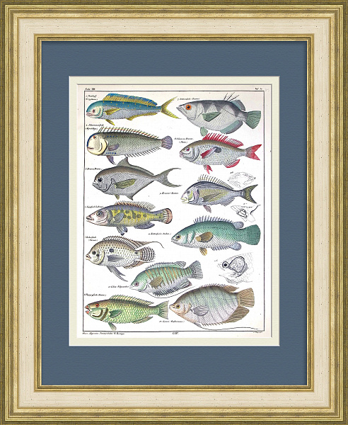 Морские рыбы: гурами, рыба-попугай, губан, морской лещ. Уникальная гравюра 19 века