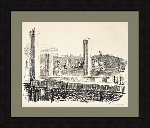 На строительстве. Узбекистан. Редкая гравюра 1943 года