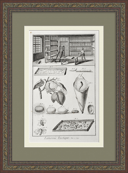 Производство шелка. Уникальная гравюра 18 века