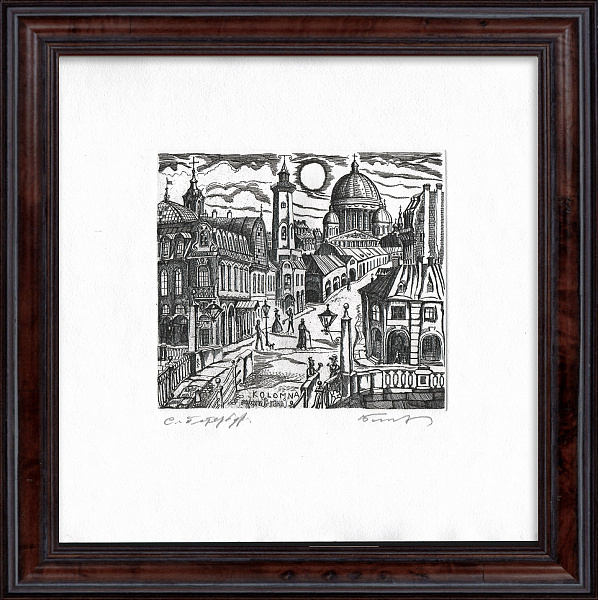 Коломна - исторический район Санкт-Петербурга. Авторская гравюра