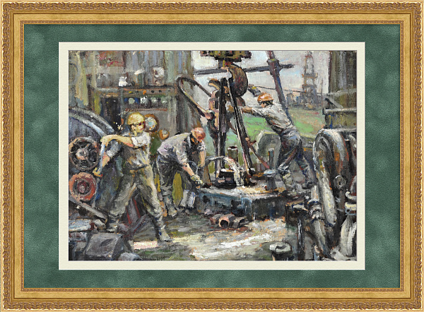 Нефтяники города Грозного. Авторская живопись 1965 года