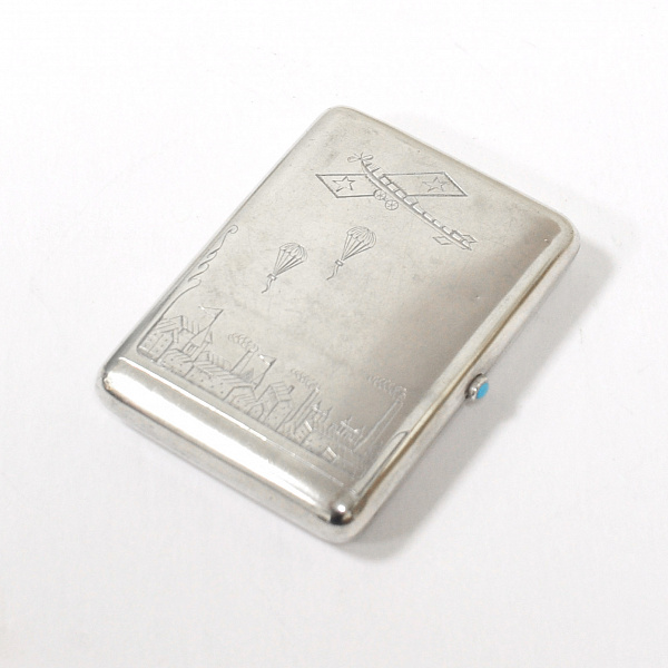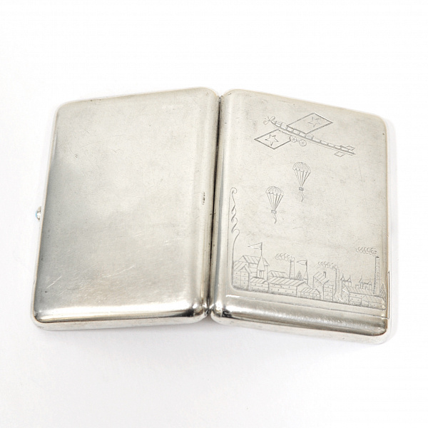 Уникальный, серебряный портсигар. Авиация и парашютизм в СССР