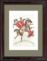 Казаки, джигитовка. Авторская, винтажная гравюра