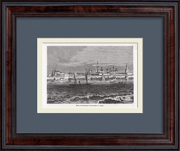 Соловецкий монастырь со стороны моря. Русский Север, старинная гравюра