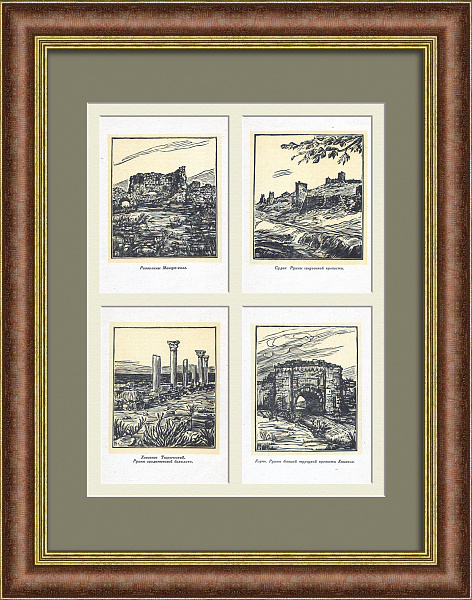 Окрестности Крыма: Бахчисарай, Судак, Керчь, Севастополь. Панно с антикварными ксилографиями