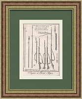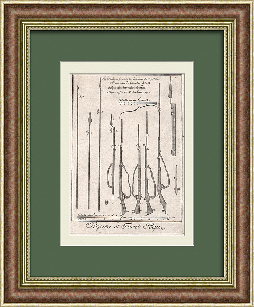 Оружие эпохи Просвещения: пики и штыки для мушкетов. Старинная гравюра 18 века