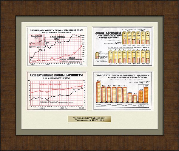 Достижения промышленности СССР: зарплата и производительность труда. Уникальное панно с диаграммами 1925 года