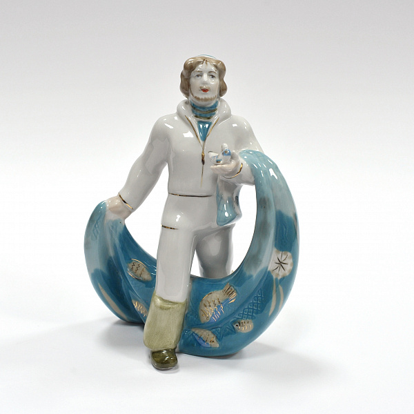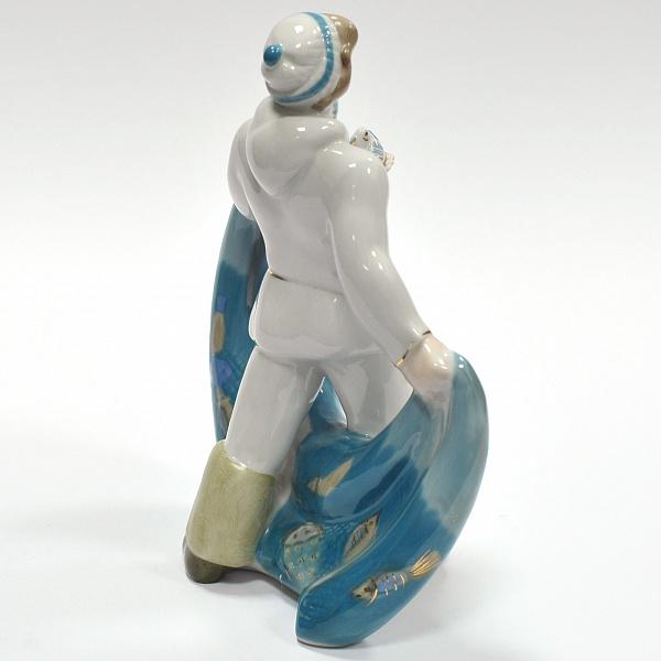 Рыбак с неводом. Советская фарфоровая статуэтка