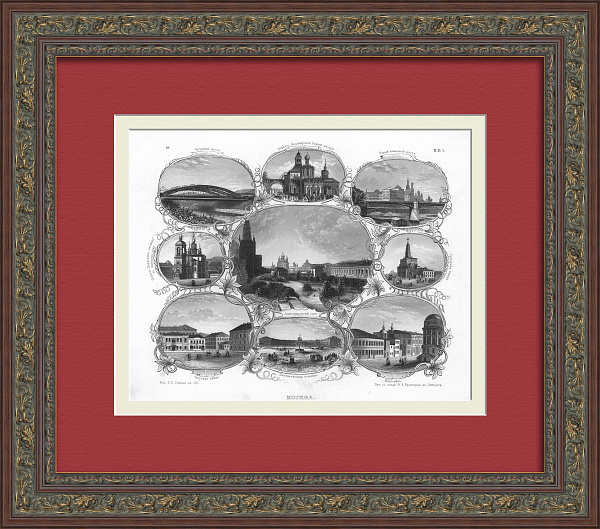 Старая Москва: Тверская улица, Китай-город, Александровский сад. Уникальная гравюра на стали 1860-х годов