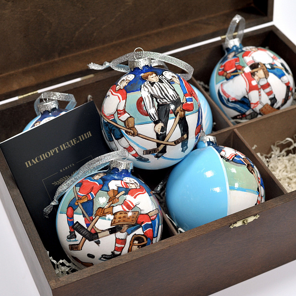 Советский хоккей. Коллекционный набор елочных шаров с ручной росписью