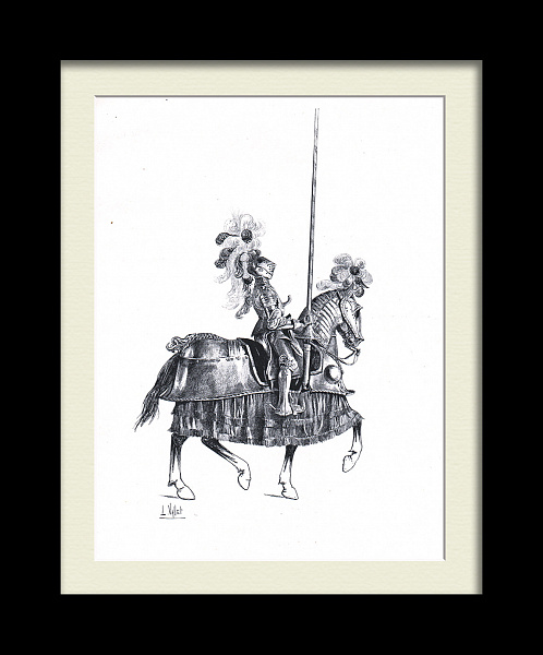 Рыцарь в военном обмундировании 16 века. Старинная гравюра 19 века
