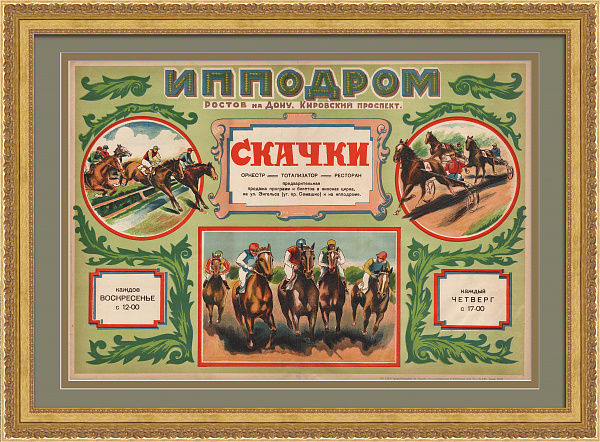 Ростовский ипподром: скачки. Старинная афиша-хромолитография 1920-х годов