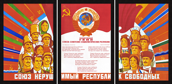 Союз нерушимый республик свободных! Дружба народов, редкий, агитационный плакат-триптих