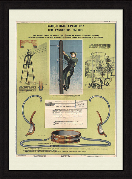 Электрификация СССР: защитные средства при работе на высоте. Коллекционный плакат-хромолитография сталинской эпохи